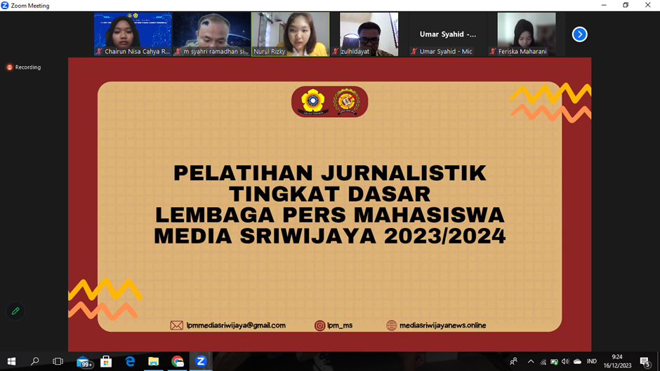 LPM MEDIA SRIWIJAYA – LPM Media Sriwijaya resmi menyelenggarakan kegiatan Pelatihan Jurnalistik Tingkat Dasar (PJTD) pada Sabtu, 16 Desember 2023. Kegiatan yang berlangsung secara daring ini merupakan kegiatan tahunan yang dibawahi oleh Divisi PSDM LPM Media Sriwijaya. Seperti namanya, PJTD menjadi kegiatan pelatihan jurnalistik yang diperuntukkan bagi anggota dan calon anggota LPM MS. Di samping sebagai sarana pengenalan dunia jurnalistik, partisipasi dalam kegiatan PJTD menjadi syarat wajib bagi calon anggota untuk secara resmi diterima sebagai anggota tetap LPM MS.
